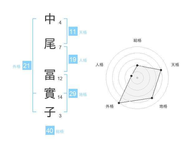 中尾 冨實子さんの外格は21画の5点!