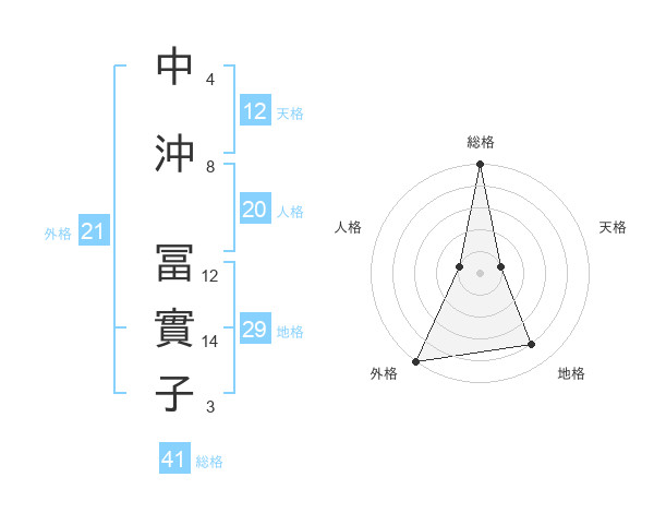 中沖 冨實子さんを姓名の画数から五運を鑑定