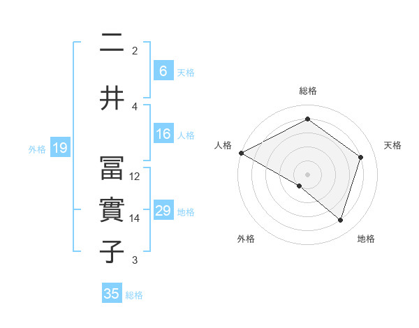 二井 冨實子さんの総格は35画の4点!