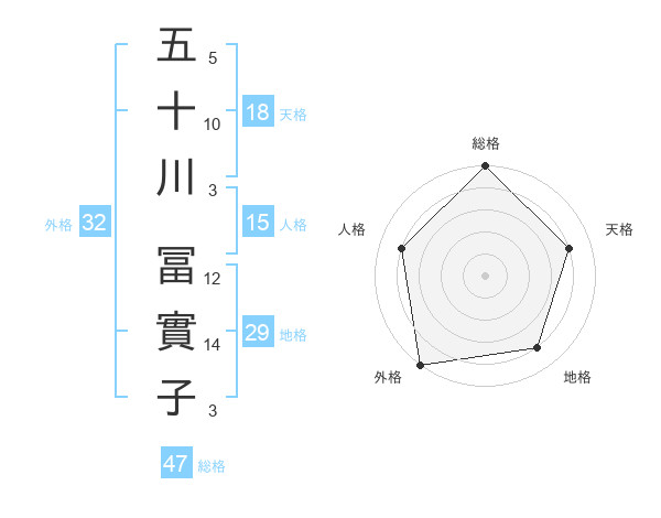 五十川 冨實子さんの総格は47画の5点!