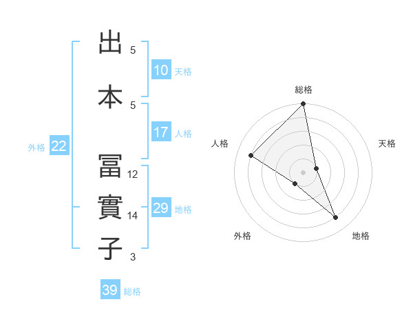 出本 冨實子さんを姓名の画数から五運を鑑定