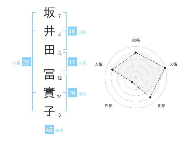 坂井田 冨實子さんを姓名の画数から五運を鑑定