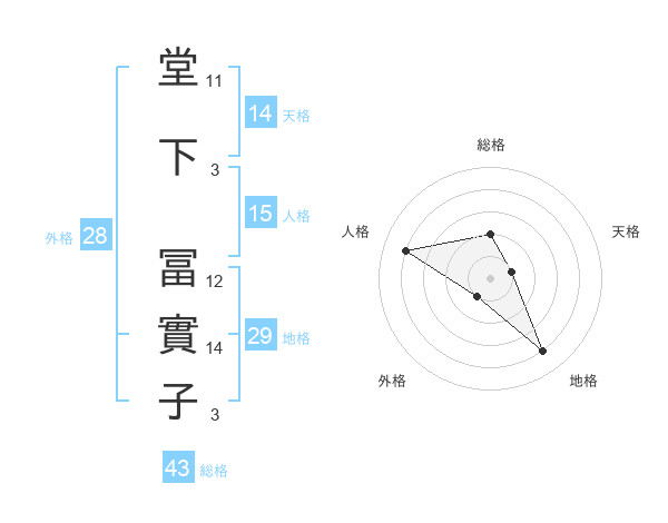 堂下 冨實子さんの天格は14画の1点!