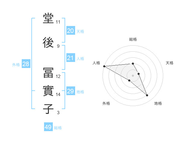 堂後 冨實子さんを姓名の画数から五運を鑑定