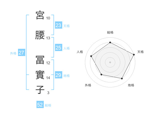 宮腰 冨實子さんの総格は52画の4点!