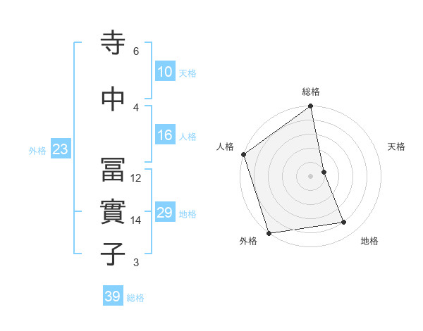寺中 冨實子さんの総格は39画の5点!
