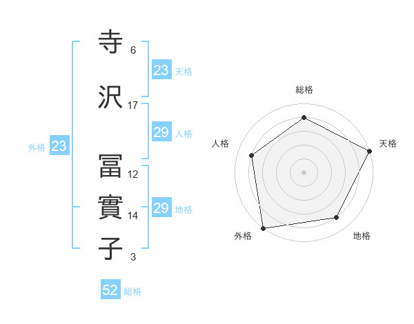 寺沢 冨實子さんの外格は23画の5点!