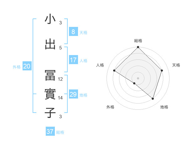 小出 冨實子さんの総格は37画の5点!