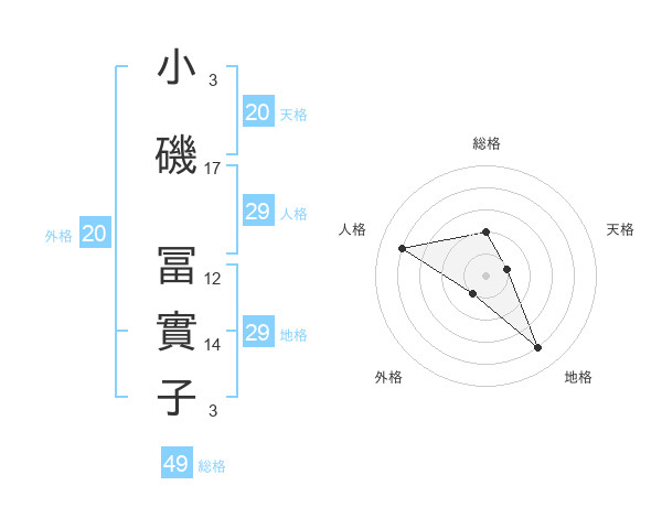 小磯 冨實子さんの天格は20画の1点!