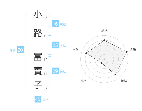 小路 冨實子さんを姓名の画数から五運を鑑定