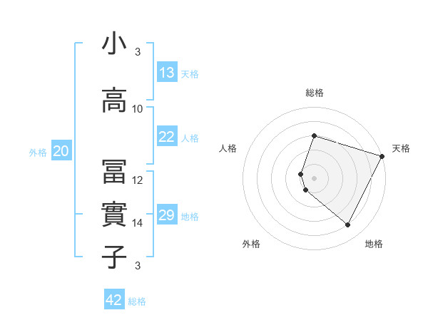 小高 冨實子さんを姓名の画数から五運を鑑定