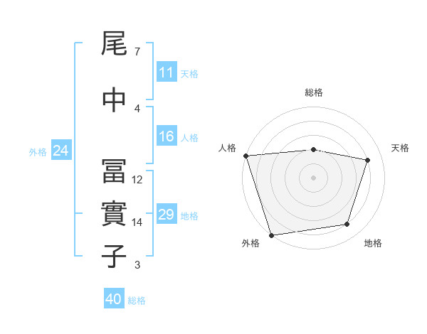 尾中 冨實子さんの総格は40画の2点!
