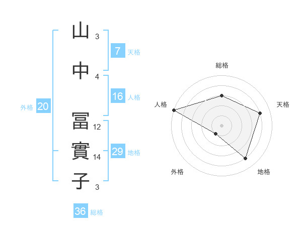 山中 冨實子さんを姓名の画数から五運を鑑定