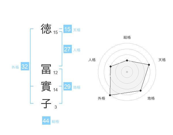 徳 冨實子さんの外格は32画の5点!