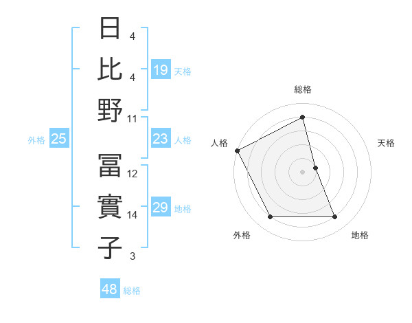 日比野 冨實子さんの総格は48画の4点!