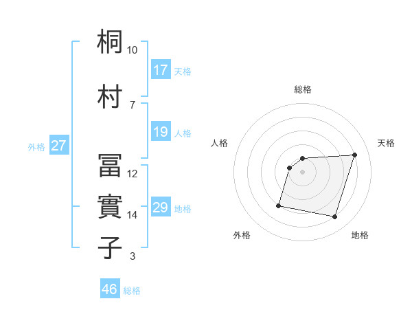 桐村 冨實子さんを姓名の画数から五運を鑑定