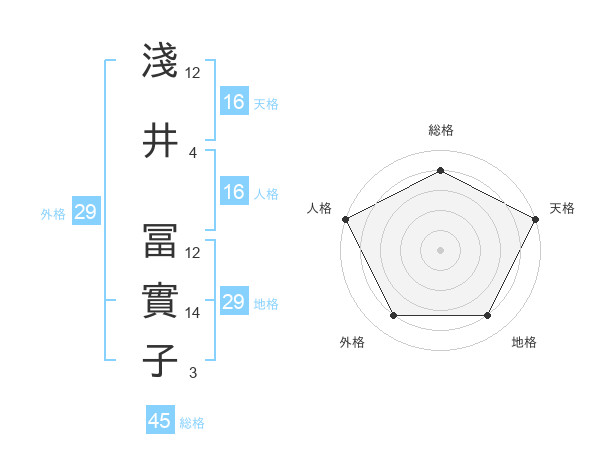 淺井 冨實子さんを姓名の画数から五運を鑑定