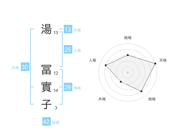 湯 冨實子さんの天格は13画の5点!