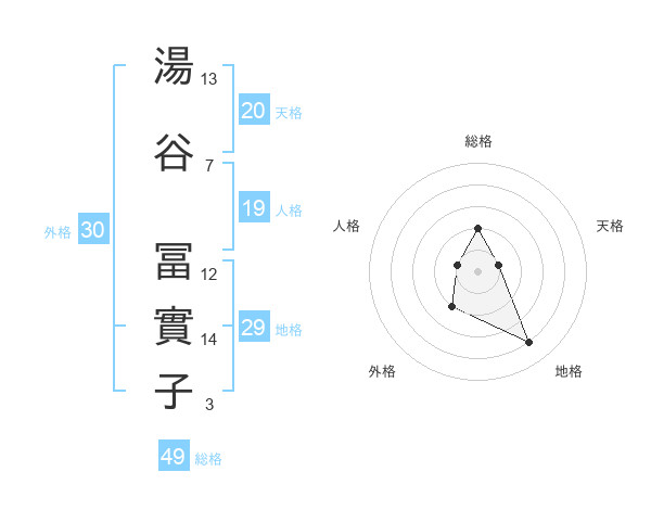 湯谷 冨實子さんの総格は49画の2点!