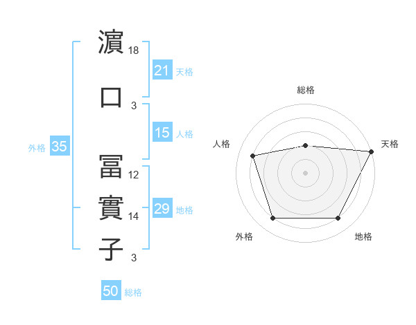 濵口 冨實子さんの総格は50画の2点!