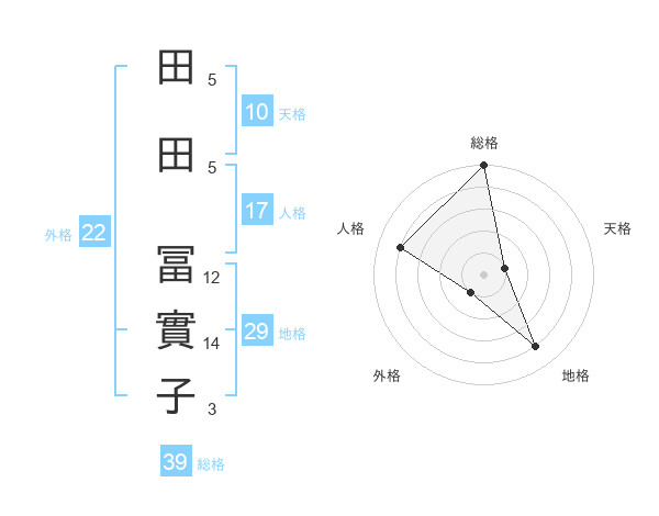 田田 冨實子さんを姓名の画数から五運を鑑定