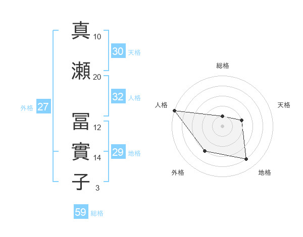 真瀬 冨實子さんの外格は27画の3点!