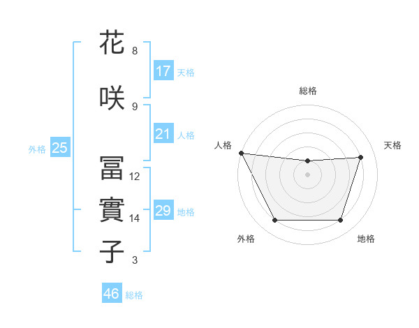 花咲 冨實子さんを姓名の画数から五運を鑑定