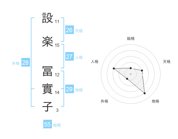 設楽 冨實子さんを姓名の画数から五運を鑑定