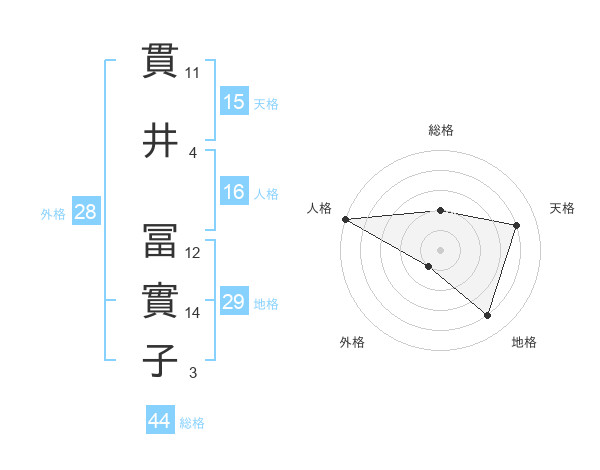 貫井 冨實子さんの天格は15画の4点!