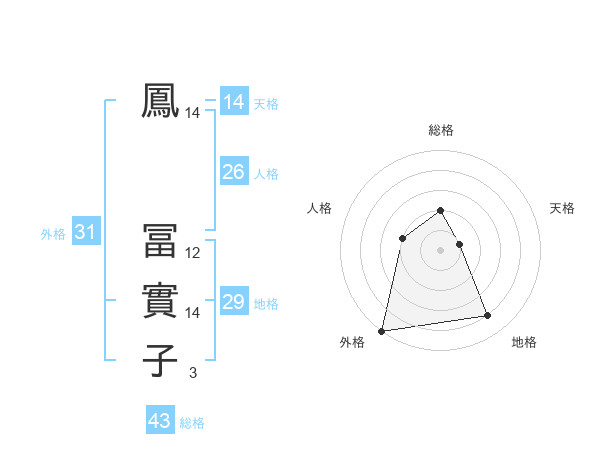 鳳 冨實子さんを姓名の画数から五運を鑑定