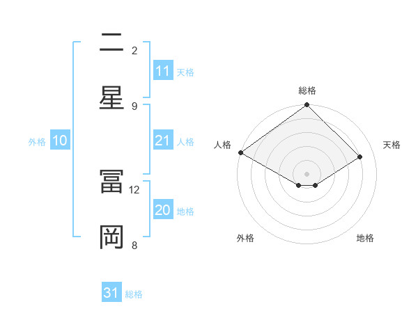 二星 冨岡さんを姓名の画数から五運を鑑定