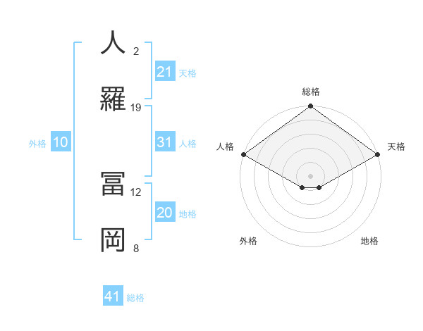 人羅 冨岡さんの天格は21画の5点!