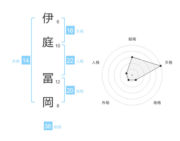 伊庭 冨岡さんの天格は16画の5点!