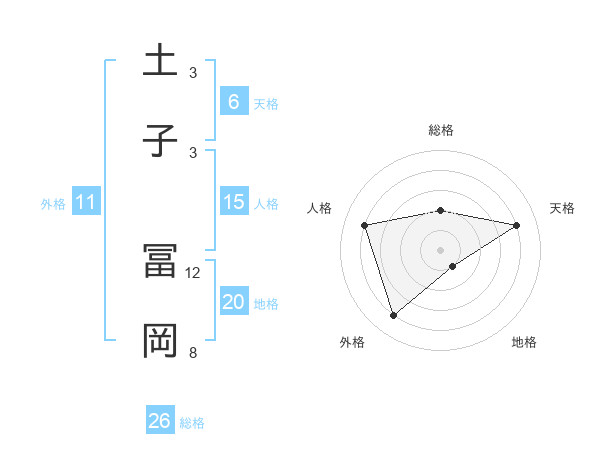 土子 冨岡さんを姓名の画数から五運を鑑定