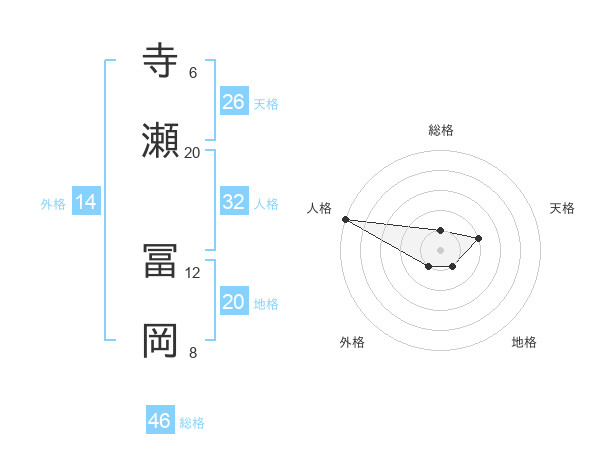 寺瀬 冨岡さんの地格は20画の1点!