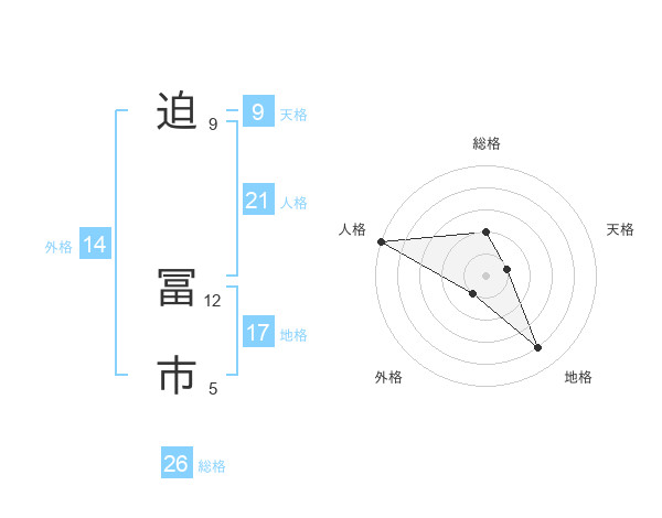迫 冨市さんの総格は26画の2点!