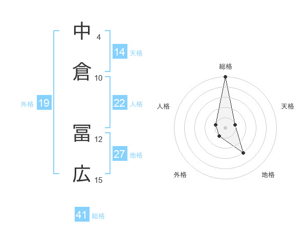 中倉 冨広さんを姓名の画数から五運を鑑定
