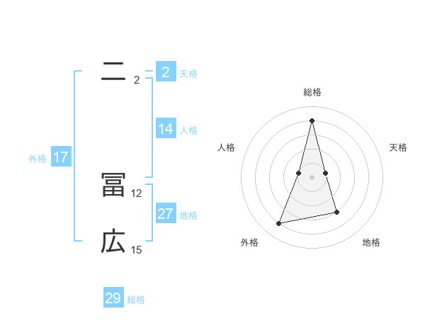 二 冨広さんの総格は29画の4点!