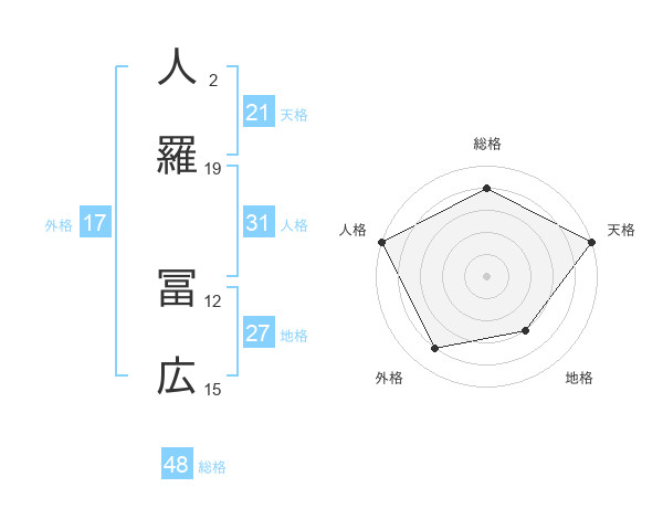 人羅 冨広さんの天格は21画の5点!