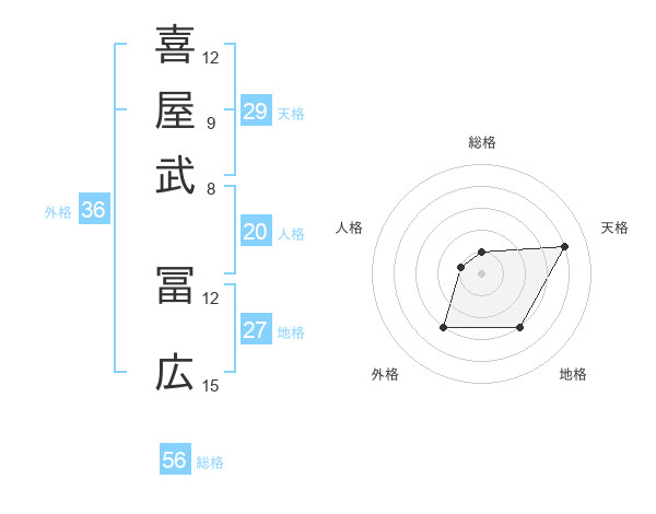 喜屋武 冨広さんの総格は56画の1点!
