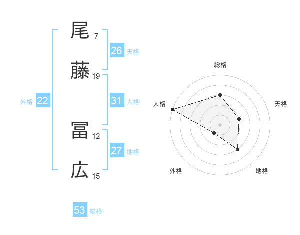 尾藤 冨広さんの総格は53画の3点!