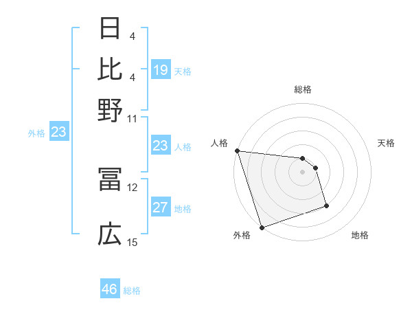 日比野 冨広さんを姓名の画数から五運を鑑定
