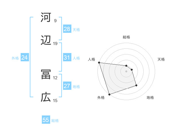 河辺 冨広さんを姓名の画数から五運を鑑定