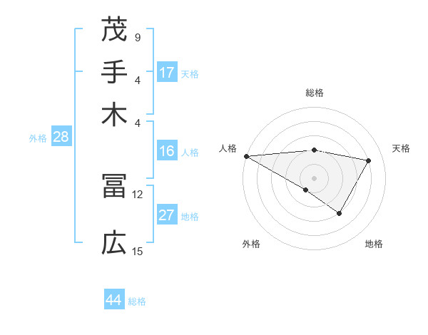 茂手木 冨広さんを姓名の画数から五運を鑑定