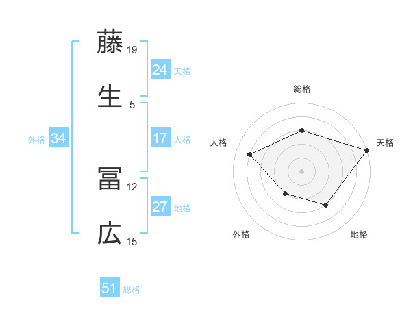 藤生 冨広さんを姓名の画数から五運を鑑定