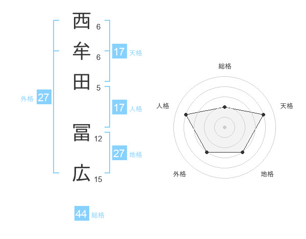 西牟田 冨広さんを姓名の画数から五運を鑑定