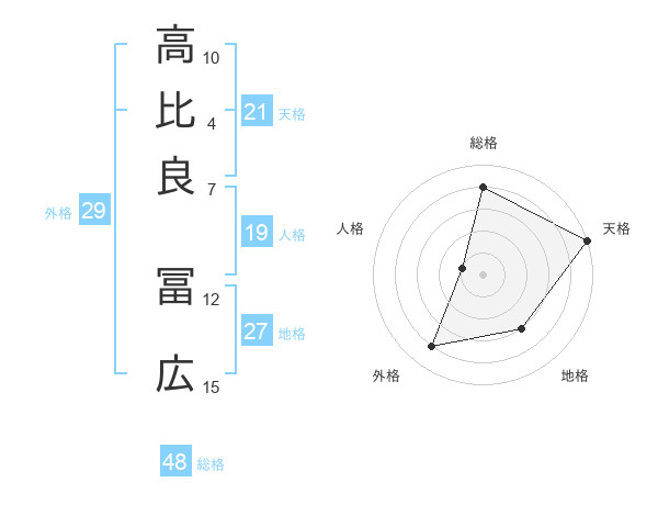 高比良 冨広さんを姓名の画数から五運を鑑定