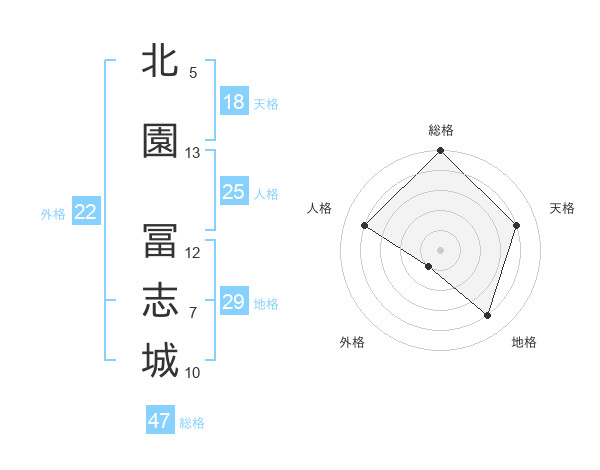 北園 冨志城さんを姓名の画数から五運を鑑定