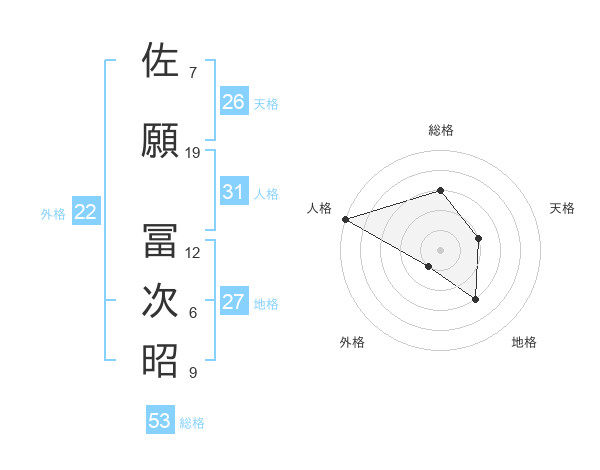 佐願 冨次昭さんを姓名の画数から五運を鑑定