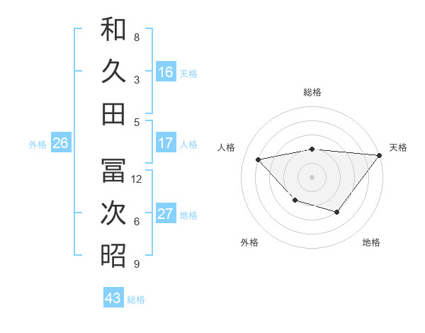 和久田 冨次昭さんを姓名の画数から五運を鑑定